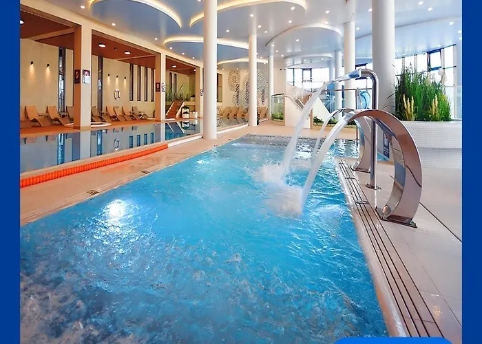 Als u een vroege vlucht hebt vanaf Kołobrzeg, liggen Apartments Aqua & Spa van 60 m^2 op 95 km van Solidarity Szczecin-Goleniów. Een verwarmd zwembad met een sauna en een waterglijbaan is er aanwezig bij het strand 1-slaapkamer appartement.